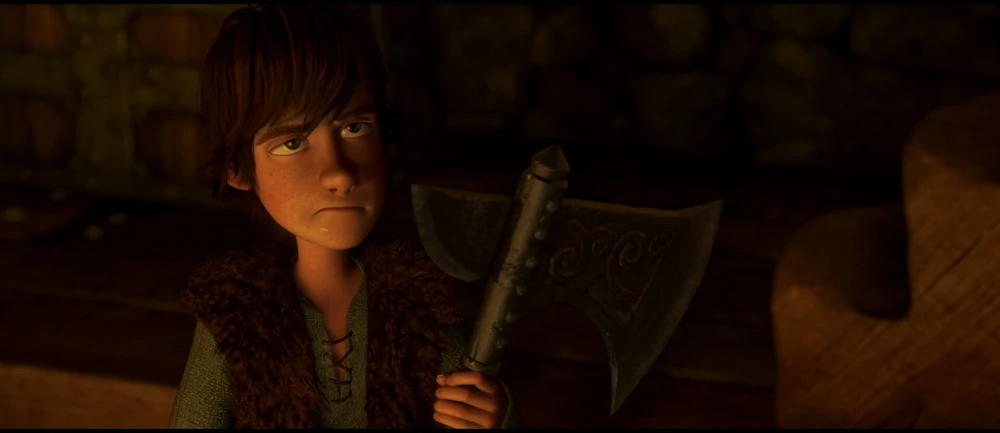 Táto scéna ukazuje, ako sa Štikút dohaduje so svojím otcom, ktorý chce, aby začal bojovať s drakmi, ale Štikút to odmieta. Ale so svojím otcom nepohne.